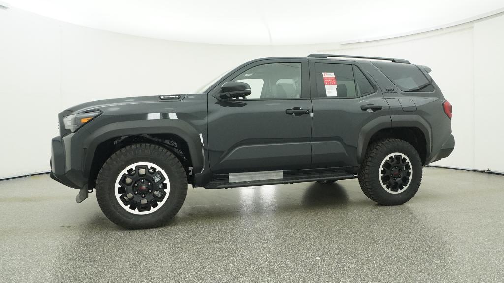- Black honeycomb-style grille, mirror caps, door handles and overfenders; color-keyed rear spoiler; black "TRD OFF ROAD" and "4RUNNER" badges